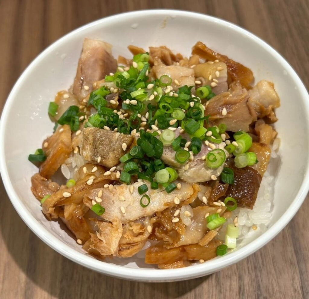 自家製チャーシューをご飯の上にのせて香ばしいタレをかけた「チャーシューごはん」と、