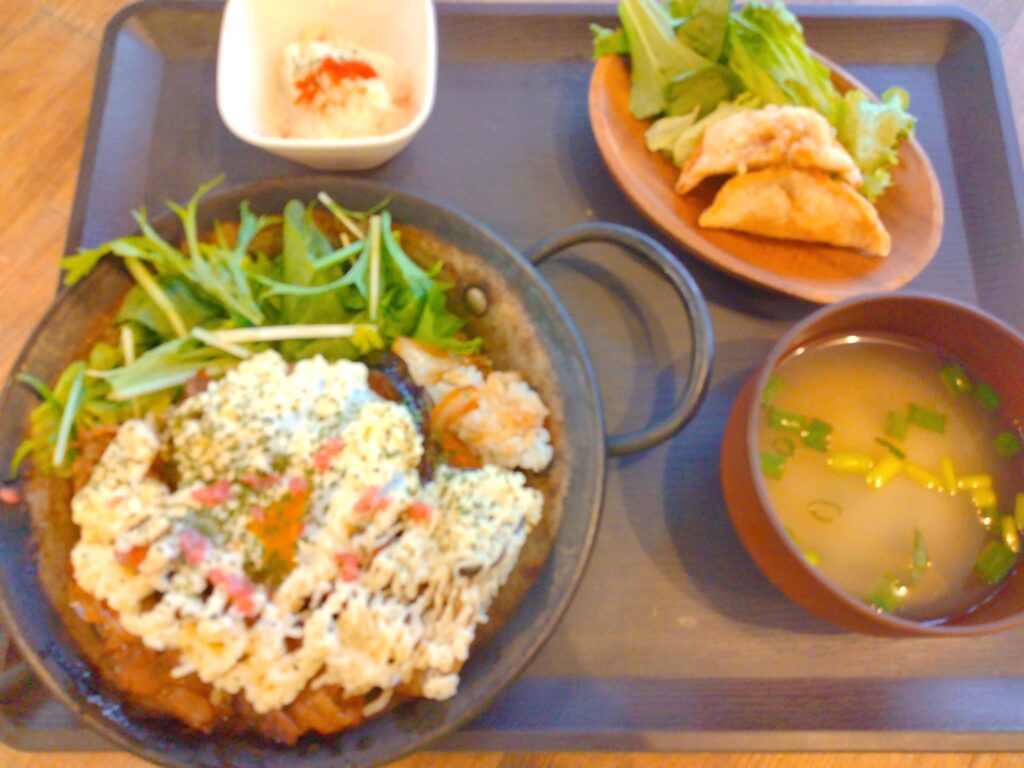 ヘルシーだけど小鉢や餃子、ご飯と味噌汁もついている